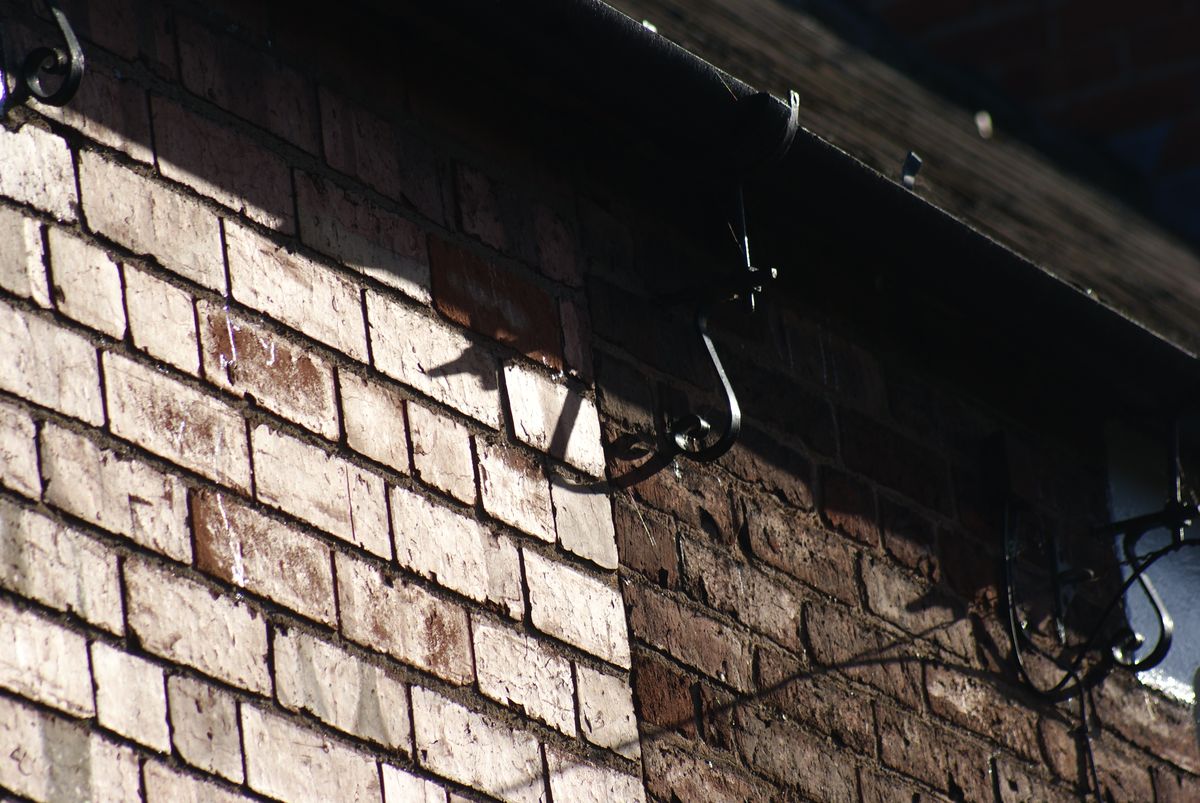 Still, something I hadn’t noticed before about this derelict house are the antique gutter brackets on the north-facing wall (images 2–3). Like most of the building, they’ve decayed into obscurity — clinging to the physical world by their fingertips on the cliff edge of oblivion. They’re ghosts themselves: half visible, half implied. One bracket, however, seems to be taking it all in stride. Someone, at some distant point in time, gave it a lick of metal paint (image 4), leaving the rest to battle the elements in what feels like a strange ritualistic experiment. And we see the results.